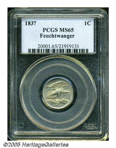 1837 1C Feuchtwanger Cent MS65 PCGS. Low-120, HT-