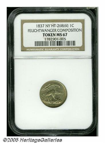 1837 1C Feuchtwanger Cent MS67 NGC. Low-120, HT-2