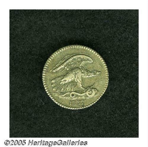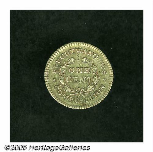 <B>1837<1C> Feuchtwanger Cent VF30 Uncertified.</B></I> Low-120, HT-268, Breen 6-I, R.1. A pale gray piece that has traces of peach and russet verdigris in protected areas. A few faded handling marks are on the lower right obverse field.