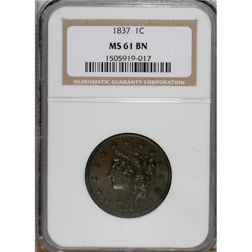 1837 1C Head of 1838 MS61 Brown NGC. NGC Census: (
