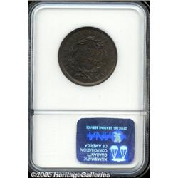 <B>1837 1C Head of 1838 MS65 Brown NGC.</B></I> N-12, Low R.3. Hints of original orange-red luster still adhere to the protected areas around many of the obverse devices. The balance of the surfaces are toned in steel-brown shades with striking definition that sharpens toward the centers. Population: 63 in 65, 31 finer (2/05).