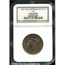 1837[1C] Plain Cords, Medium Letters MS66 Red and Brown NGC.
