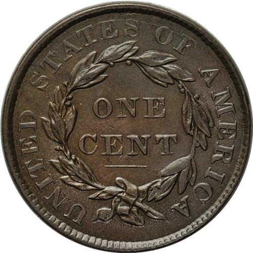 <B>1837<1C> Plain Cords, Medium Letters. N-14, R.2. AU55 NGC and EAC.</B></I> Although the borders appear to be weakened, this is an early die state of the variety. Pale blue-green surfaces, tending toward olive on the reverse, with hints of reflectivity. This example is not listed in Bill Noyes Census, but if it were, it would probably rank 12th or 13th finest known.<BR><I>Ex: George Ramont (2/28/1977).</B></I> Envelope Included.