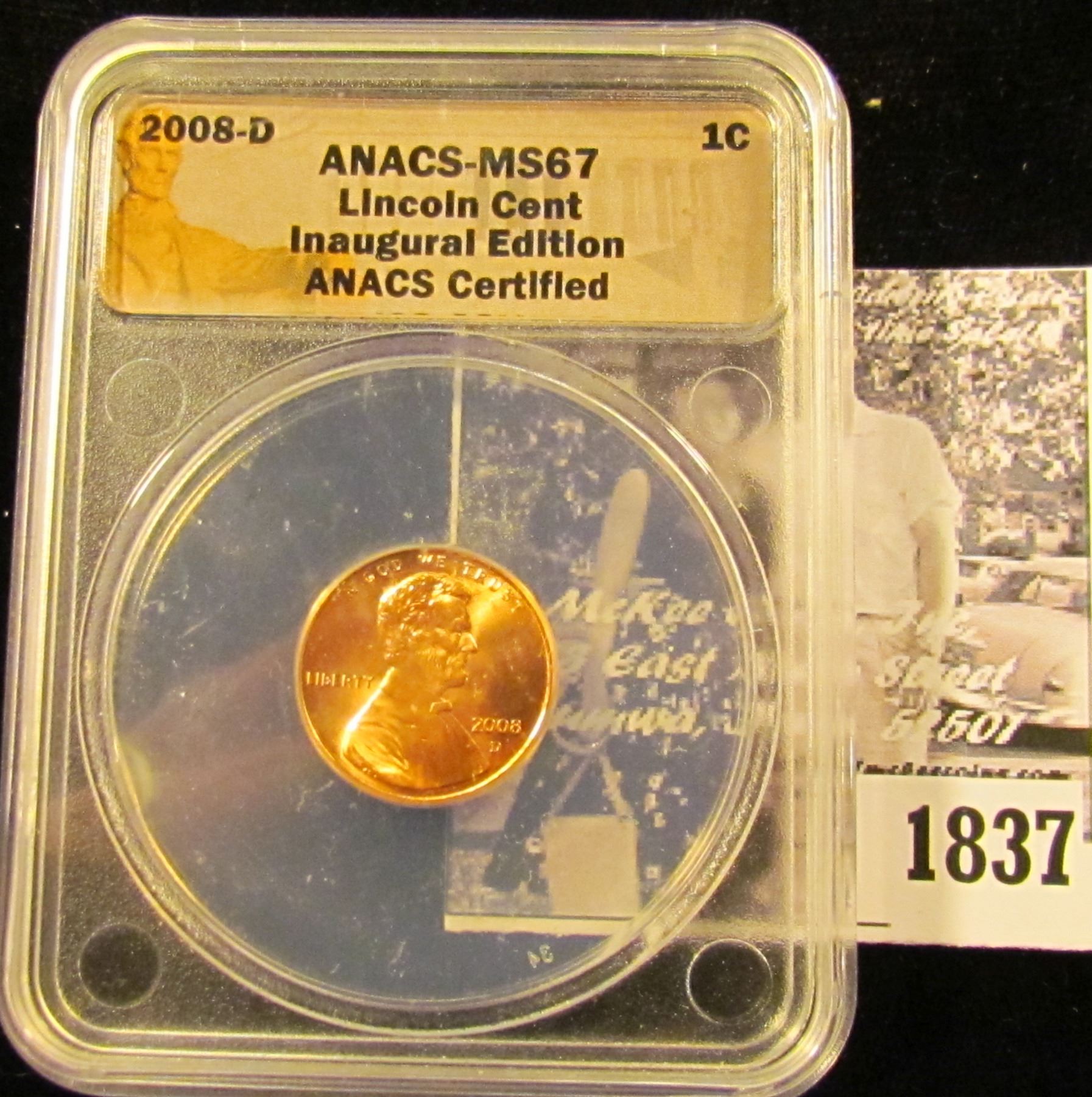 1837 . 2008 D Lincoln Cent ANACS slabbed MS67 Inaugural Edition.
