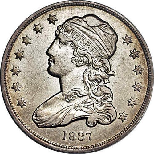 1837 25C B-2, R.1. AU53 NGC. Die State II. Digit 7 is 1837[25C] B-2, R.1. AU53 NGC. Die State II.