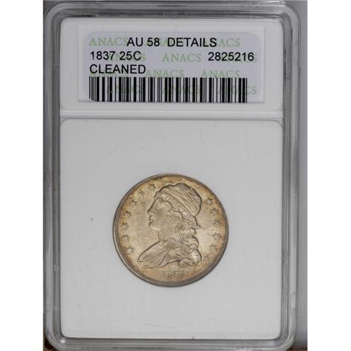 1837 25C --Cleaned--ANACS. AU58 Details. B-2, R.1. Clea 1837[25C]--Cleaned--ANACS. AU58 Details.
