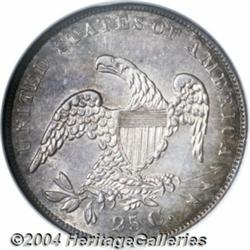 <table><tr><td><table><tr><td>1837 25C MS62 NGC. B-4, R.6. An elusive variety which has the 7 in the date left of the curl and the tip of the branch stem over the serif of the C in the denomination. Apricot-gold, apple-green, and mauve-gray colors endow this well struck and satiny example. The obverse is bisected from 1 to 7 o'clock by a spindly die crack, as made. A second die crack journeys through most of STATES. <BR><BR><B>Important notice:</B> Heritage usually auctions material at the rate of 200-250 lots per hour. On some occasions eBay Live bid software or the Internet may not be able to keep up with the pace of the auction. We recommend placing a realistic absentee bid now as insurance to avoid disappointment. Occasionally the auctioneer may eliminate or reject an eBay Live bid, and the auctioneer may also reopen a lot after the close of the eBay live bidding (usually because we missed an audience bid), and may reject your bid even if it shows you as the winning bidder. By bidding via eBay Live, you agree that Heritage may award the lot to another bidder at its sole discretion under the circumstances described above or any other reasonable circumstances. Since eBay bids are not shown to us until we open the lot on the floor, we treat those bids just like floor bids. In most cases the floor responds before the eBay bid is presented to us, due to Internet lag time, so for consistency we have made it a policy that floor bids are always considered first over tie eBay live bids. Also please note that all Heritage lots purchased through eBay Live carry a 20% Buyer's Premium. Please make sure you read the Terms and Conditions before you bid. <BR><BR><B>IMPORTANT ANNOUNCEMENT ABOUT RESERVES:</B> Heritage now divulges all reserves on its web site 7 days before every auction. If you want to know whether the reserve on this lot has been met, and if not, what the reserve amount is, please visit this lot page on the HeritageCoin.com web site, or email: bid@HeritageGalleries.com </span></font></td></tr></table></td></tr></table>