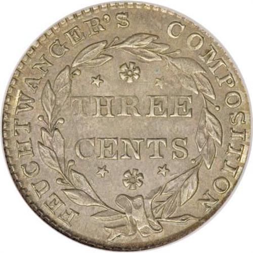 <B>1837 3C Feuchtwanger Three Cent, HT-262, AU55 NGC.</B></I> Low-117, R.3. The legs of Liberty and Justice show slight highpoint friction, but rotation of the piece reveals pockets of luster, which are especially prominent along the reverse peripheral legend. Best of all, there are no detectable marks. Listed on page 375 of the 2008 <I>Guide Book</B></I>.<BR><I>From The Madison Collection.</B></I><BR><BR><b>Shipping:</b> Coins & Currency (<a target="_blank" href="http://www.heritageauctions.com/common/shipping.php">view shipping information</a>)