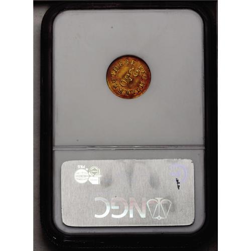 <B>(1837-42)<$2 1/2> C.Bechtler Quarter Eagle, 67G. 21C. MS61 NGC.</B></I> Kagin-10, Breen-7753. Late die state with three cracks and struck from rotated dies. Beautiful, rich, cherry-magenta color hides almost reflective underlying luster. A small, diagonal mark in the field above the 25 of the denomination serves as identification. Remarkable quality for this variety and the finest we have offered in many years.<BR> The only quarter eagle of this type and quickly identifiable by the use of inverted Vs in the place of As. This is a rare issue with around 50 or so known pieces in all grades. There are only a handful of Uncirculated examples in existence. Listed on page 345 of the 2007 <I>Guide Book.</B></I> Census: 1 in 61, 5 finer (4/06).