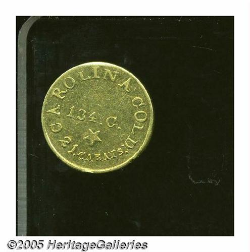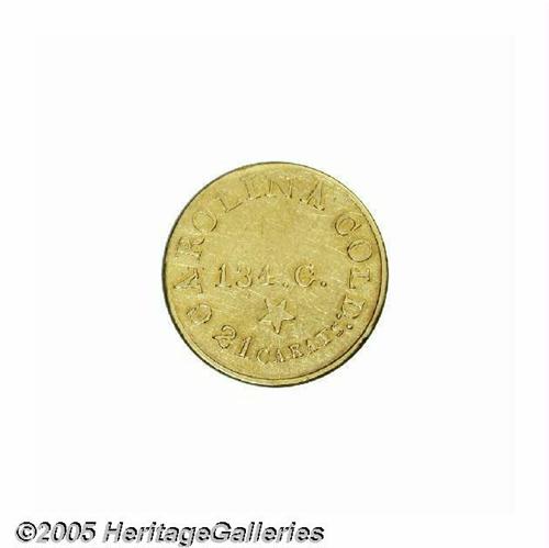 <B>(1837-42)<$5> C.Bechtler Five Dollar, 134G, With Star AU50 Scratches Uncertified.</B></I> K-20, R.4. The more challenging Half Eagle denomination from this North Carolina private minter. Bright green-gold surfaces display the familiar diagonal die crack through the denomination. Numerous shallow scratches are seen in the field below. Listed on page 293 of the 2005 <I>Guide Book.</B></I>