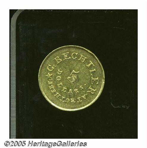 (1837-42) $5 C.Bechtler Five Dollar, 134G, With S