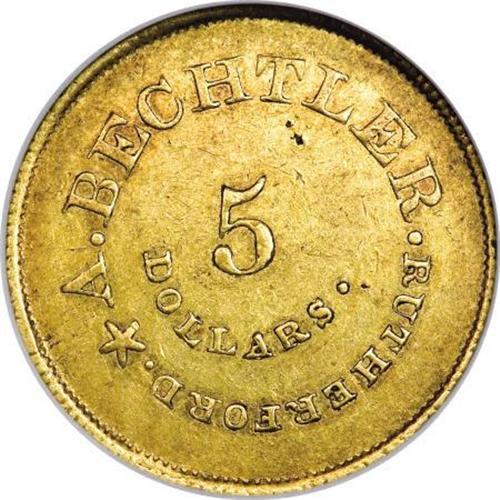 (1837-42) $5 C. Bechtler Five Dollar, 134G, With