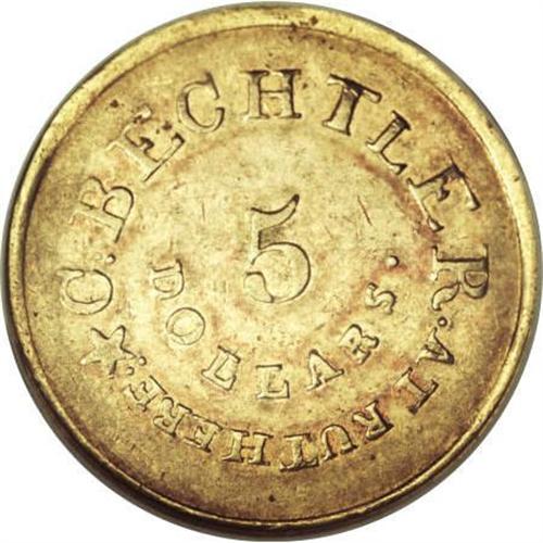 (1837-42) $5 C. Bechtler Five Dollar, 134G, With