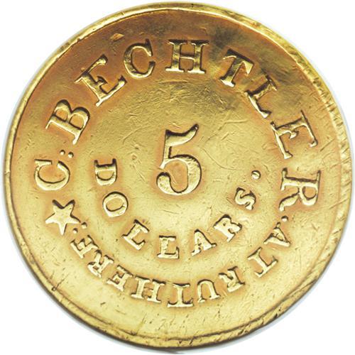 (1837-42) $5 C. Bechtler Five Dollar, RUTHERF:--Repair