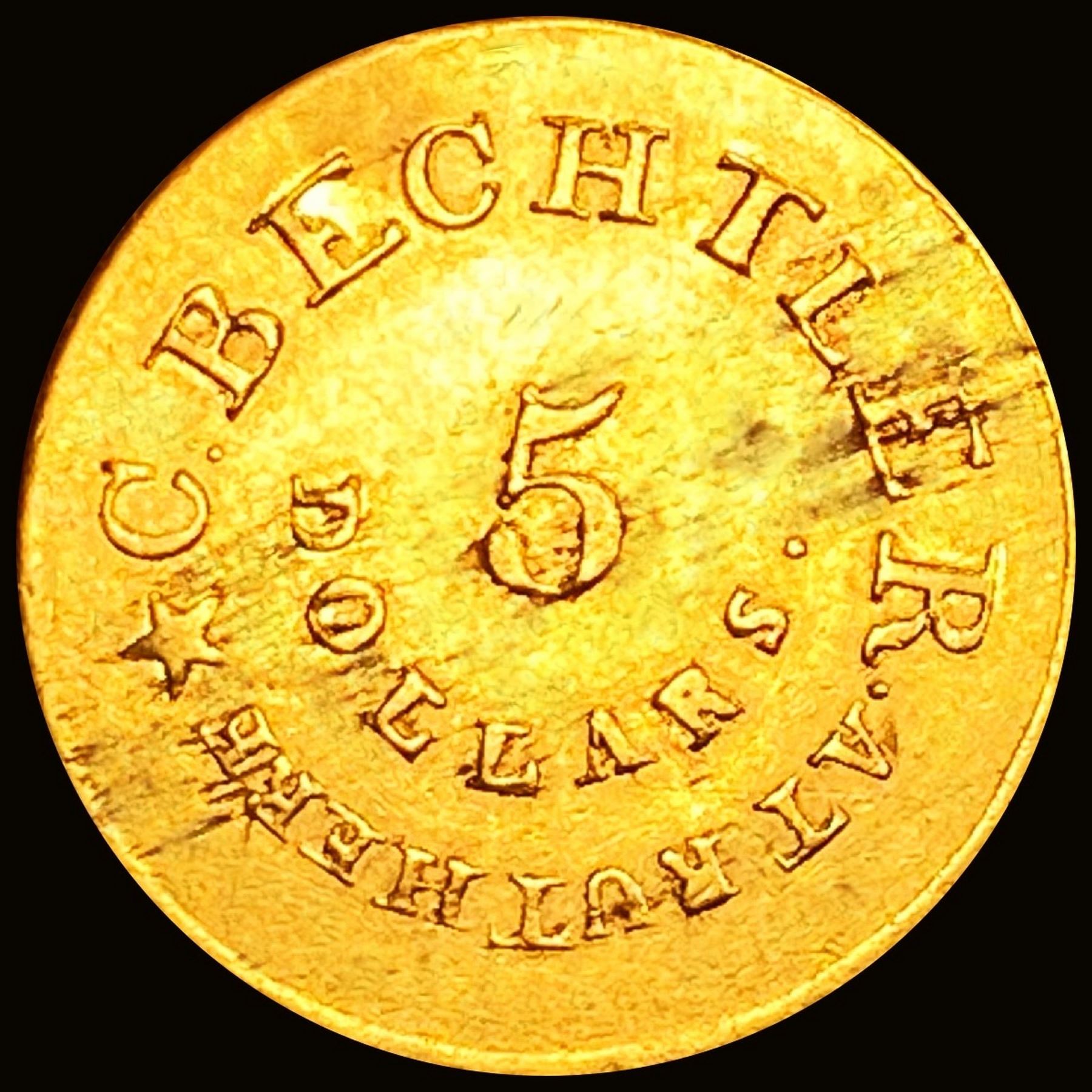 1837-42 Bechtler $5 Gold 128G 22C Rutherf CHOICE A