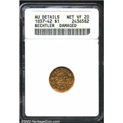 (1837-42) G$1 C.Bechtler Dollar, N Reversed--Damaged--ANACS. AU Details, Net VF20. K-4, R.4. Cleaned