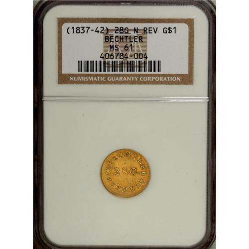 (1837-42) G$1 C. Bechtler Dollar, N Reversed MS61 NGC.