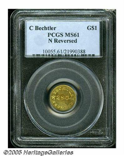 (1837-42) G$1 C.Bechtler Dollar, N Reversed MS61