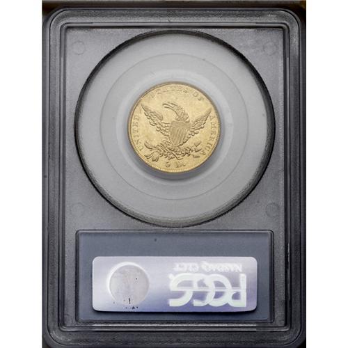 <B>1837<$5> AU50 PCGS.</B></I> Breen-6512, Large Date, Large 5, McCloskey 2-B, R.3. Glowing luster brightens legends and devices. The eagle is boldly defined aside from the wing tips. A couple of pinscratches are concealed on the lower right obverse quadrant. <BR><BR><B>Important notice:</B> Heritage usually auctions material at the rate of 200-250 lots per hour. On some occasions eBay Live bid software or the Internet may not be able to keep up with the pace of the auction. We recommend placing a realistic absentee bid now as insurance to avoid disappointment. Occasionally the auctioneer may eliminate or reject an eBay Live bid, and the auctioneer may also reopen a lot after the close of the eBay live bidding (usually because we missed an audience bid), and may reject your bid even if it shows you as the winning bidder. By bidding via eBay Live, you agree that Heritage may award the lot to another bidder at its sole discretion under the circumstances described above or any other reasonable circumstances. Since eBay bids are not shown to us until we open the lot on the floor, we treat those bids just like floor bids. In most cases the floor responds before the eBay bid is presented to us, due to Internet lag time, so for consistency we have made it a policy that floor bids are always considered first over tie eBay live bids. Also please note that all Heritage lots purchased through eBay Live carry a 20% Buyer's Premium. Please make sure you read the Terms and Conditions before you bid. This lot is being auctioned in conjunction with a live floor auction by Heritage Galleries & Auctioneers. All final auction and invoice information will be supplied by Heritage Galleries & Auctioneers, and all other information should be considered preliminary. Lot:2644 <BR><BR><B>Winning Notification and Billing:</B> After the FINAL session in this auction is complete, Heritage will send e-mail and snail mail invoices. This process normally takes several days. All final auction and invoice information will be supplied by Heritage Galleries & Auctioneers, and all other information should be considered preliminary. <BR><BR>This auction will be conducted on a live auction floor and over the Internet through eBay Live. If you choose to place an absentee bid, please take a moment to <font color='#0000ff'><u><a href='http://pages.ebay.com/liveauctions/help/before/laabsentee.html'>learn how eBay Live absentee bidding works</a></u></font><font color='#000000'>