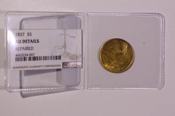 1837 5 Classic Head. NGC graded Details of About Uncirculated. Removed from slab. Repaired PCGS # 8175 .