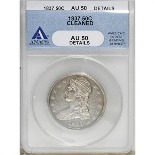 <B>1837 50C --Cleaned--ANACS. AU50 Details.</B></I> NGC Census: (35/747). PCGS Population (103/638). Mintage: 3,629,820. Numismedia Wsl. Price for NGC/PCGS coin in AU50: $233. (#6176)<BR><BR><B>Coin Engraver:</B> Christian Gobrecht<BR><BR><b>Shipping:</b> Coins & Currency (<a target="_blank" href="http://www.heritageauctions.com/common/shipping.php">view shipping information</a>)