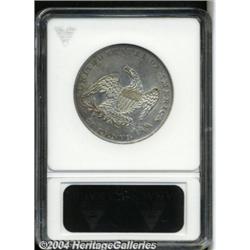 <B>1837<50C> AU53 ANACS.</B></I> Breen-4733. Inverted G in AMERICA. Quite sharply struck with lovely heather and pale blue toning over satiny silver surfaces. The C of AMERICA looks almost exactly like an inverted G, due to an engraving scratch in the die. This is a wonderfully intriguing and rather scarce variety. <BR><BR><B>Important notice:</B> Heritage usually auctions material at the rate of 200-250 lots per hour. On some occasions eBay Live bid software or the Internet may not be able to keep up with the pace of the auction. We recommend placing a realistic absentee bid now as insurance to avoid disappointment. Occasionally the auctioneer may eliminate or reject an eBay Live bid, and the auctioneer may also reopen a lot after the close of the eBay live bidding (usually because we missed an audience bid), and may reject your bid even if it shows you as the winning bidder. By bidding via eBay Live, you agree that Heritage may award the lot to another bidder at its sole discretion under the circumstances described above or any other reasonable circumstances. Since eBay bids are not shown to us until we open the lot on the floor, we treat those bids just like floor bids. In most cases the floor responds before the eBay bid is presented to us, due to Internet lag time, so for consistency we have made it a policy that floor bids are always considered first over tie eBay live bids. Also please note that all Heritage lots purchased through eBay Live carry a 20% Buyer's Premium. Please make sure you read the Terms and Conditions before you bid. </span></font></tr></table></td></tr></table>