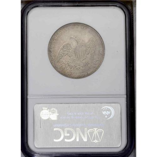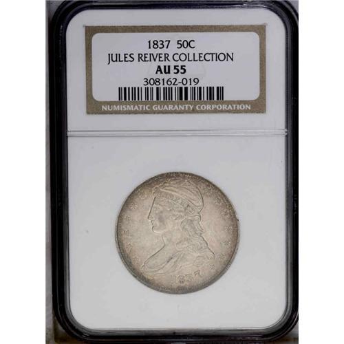 <B>1837<50C> AU55 NGC.</B></I> JR-24b, R.5. The spikes and lines visible on JR-24a are weaker on this variety, in some cases considerably so. This example displays attractive gold-gray patina and traces of luster in the recessed areas. Nicely struck and quite clean throughout.<BR><I>Ex: Lawver (1/1989).</B></I> Envelope Included.