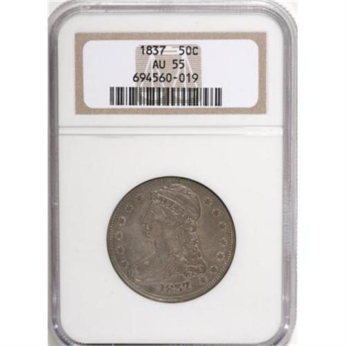 <B>1837 50C AU55 NGC.</B></I> NGC Census: (98/622). PCGS Population (150/437). Mintage: 3,629,820. Numismedia Wsl. Price for NGC/PCGS coin in AU55: $321. (#6176)<BR><BR><B>Coin Engraver:</B> Christian Gobrecht<BR><BR><b>Shipping:</b> Coins & Currency (<a target="_blank" href="http://www.heritageauctions.com/common/shipping.php">view shipping information</a>)