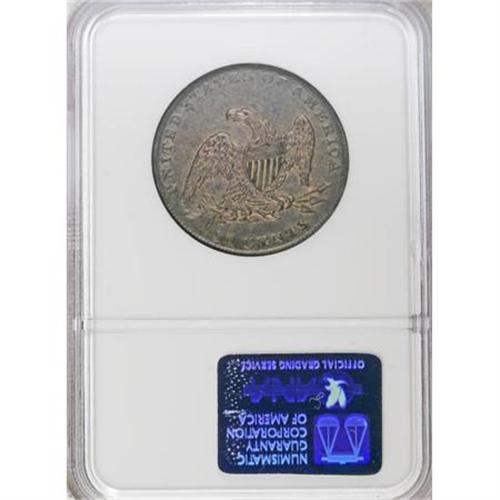 <B>1837 50C AU58 NGC.</B></I> Pleasingly detailed overall with just a touch of highpoint friction and a small scuff in the right obverse field. The luminous surfaces show lovely olive-green and cornflower-blue patina with hints of rose and orange on the reverse.<BR><BR><B>Coin Engraver:</B> Christian Gobrecht<BR><BR><b>Shipping:</b> Coins & Currency (<a target="_blank" href="http://www.heritageauctions.com/common/shipping.php">view shipping information</a>)