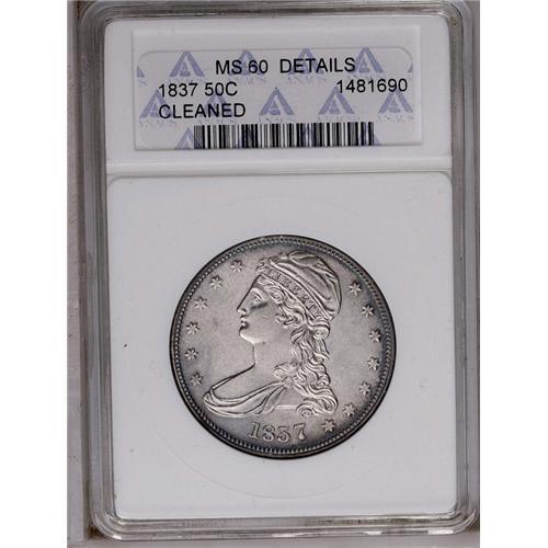 1837 50C --Cleaned--ANACS, MS60 Details. There is a sma