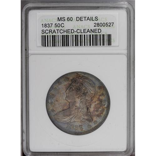 1837 50C --Scratched, Cleaned--ANACS. MS60 Details. Dub 1837[50C]--Scratched, Cleaned--ANACS. MS60 D