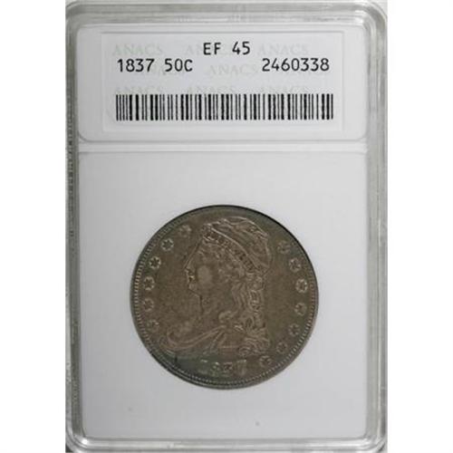 <B>1837 50C XF45 ANACS.</B></I> NGC Census: (48/790). PCGS Population (75/744). Mintage: 3,629,820. Numismedia Wsl. Price for NGC/PCGS coin in XF45: $228. (#6176)<BR><BR><B>Coin Engraver:</B> Christian Gobrecht<BR><BR><b>Shipping:</b> Coins & Currency (<a target="_blank" href="http://www.heritageauctions.com/common/shipping.php">view shipping information</a>)