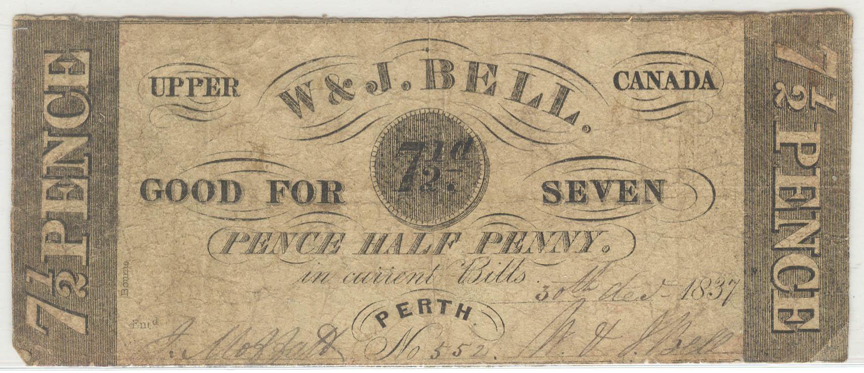 1837 7 1/2d W & J Bell, Perth UC, ON10-10-04a, VF, Issued note,