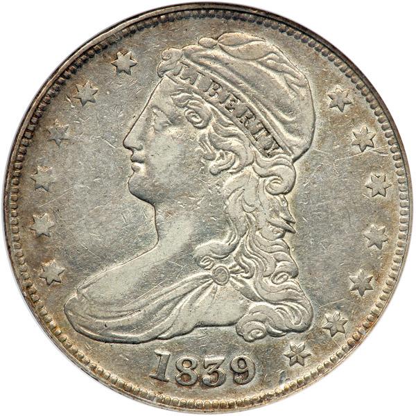 1837 Capped Bust Half Dollar. ANACS graded EF-45. Lightly toned.