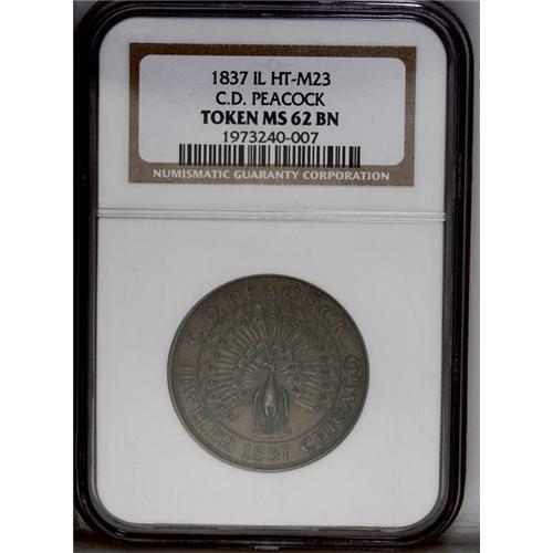 1837 C.D. Peacock, HT-M23, R.2, Chicago, IL, MS62 Bro