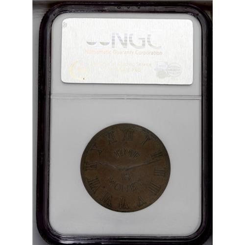 <B>"1837" C.D. Peacock, HT-M23, R.2, Chicago, IL, MS62 Brown NGC.</B></I> According to Rulau, HT-M23 was struck in 1906 by Gorham Mfg. Co., on order of jeweler Charles Daniel Peacock. A numismatist obviously had a hand in the design of these pieces, which resurrect the motif of the 1837 Smiths Clock Hard Times type. A mildly prooflike golden-brown piece with minor reverse marks.<BR><I>From The Troy Wiseman Collection.</B></I>