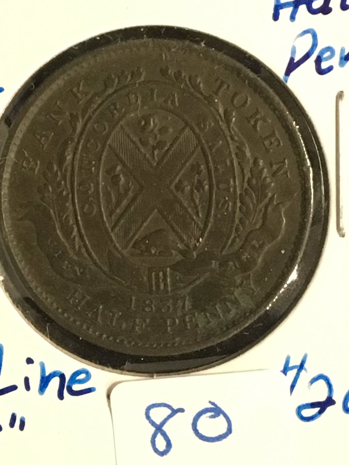 NICE GRADE TOKEN WITH CITY BANK ON THE RIBBON.IN-LINE (V) VARIETY!