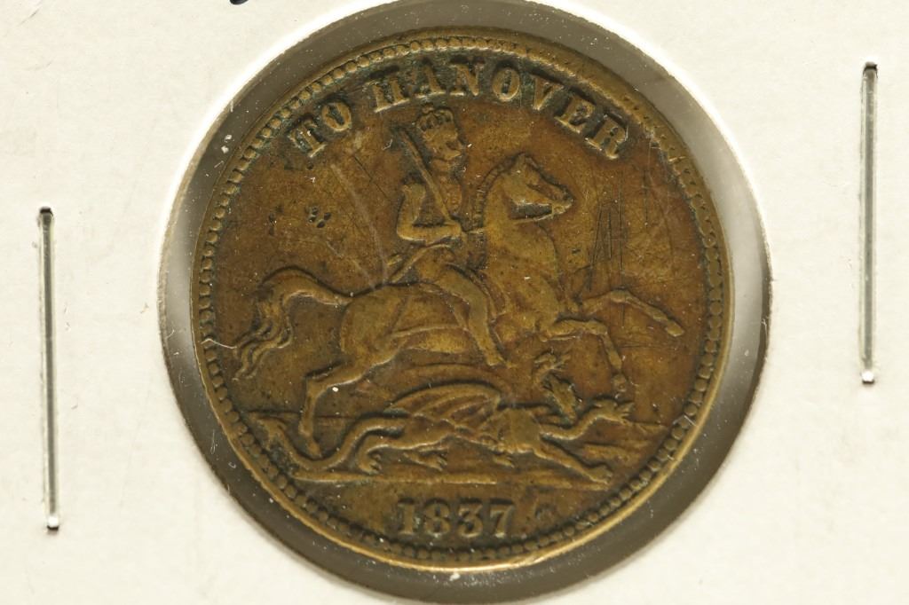 THESE WHERE PRODUCED TO CELEBRATE THE DEPARTURE OF QUEEN VICTORIA' S UNPOPULAR UNCLE (ERNEST AUGUSTUS, DUKE OF CUMBERLAND) TO HANOVER. WHEN QUEEN VICTORIA WAS CROWED QUEEN SHE COULD NOT TAKE THE THRONE IN