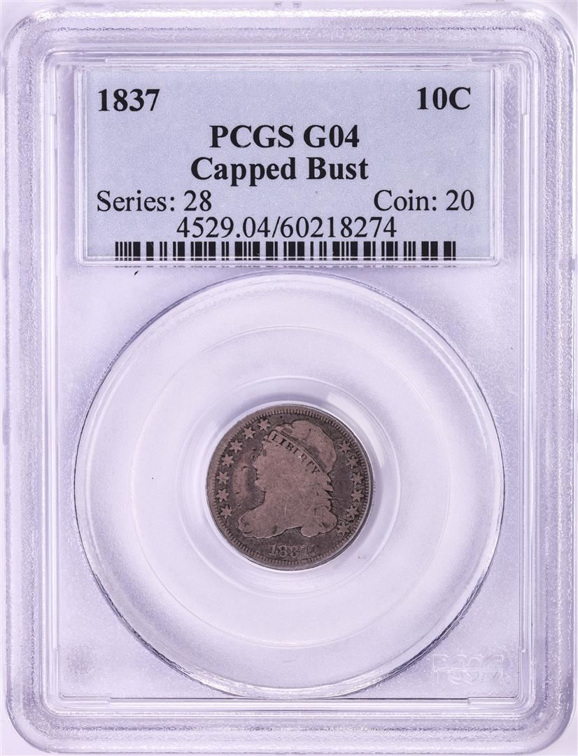 One 1837 Capped Bust Dime Coin PCGS G04. PCGS Graded.