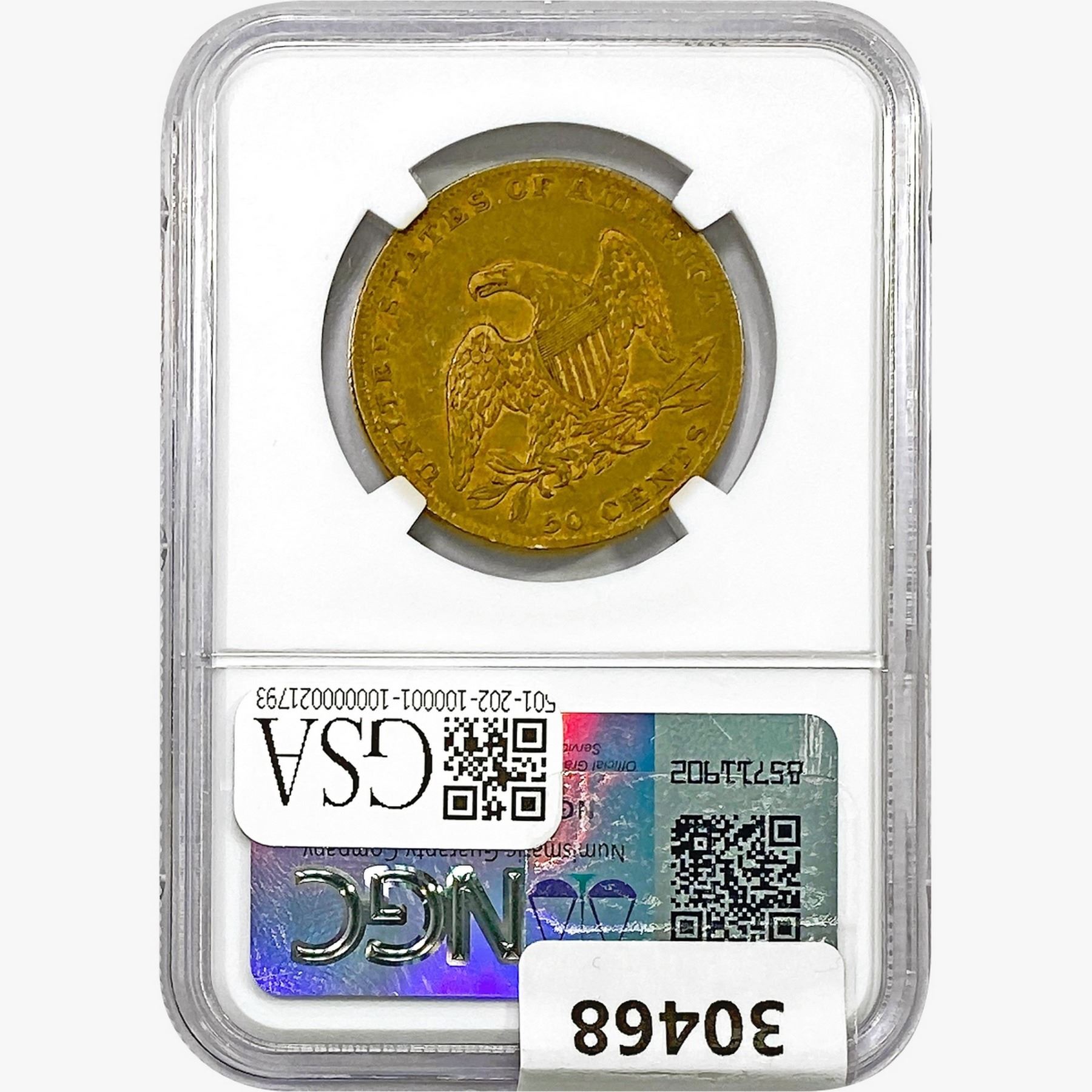 l. All non-certified coins and currency are guaranteed genuine, but are not guaranteed as to grade, since grading is a matter of opinion, an art and not a science, and therefore the description rendered by GSA or any third-party grading service may not agree with the opinion of others (including trained experts), and the same expert may not grade the same item with the same grade at two different times. GSA may, but is not obligated to, express an opinion as to non-certified numismatic items, in GSA’s opinion, or by its employees’ experience and the current interpretation of the American Numismatic Association’s standards as of the date the catalog was prepared. There is no guarantee or warranty expressed or implied that the grading opinions utilized by GSA, if any, will meet the standards of any grading service at any time in the future.