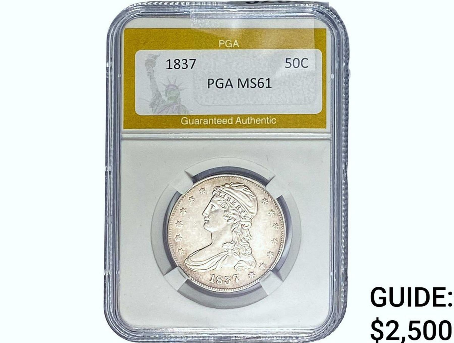 COINS AND CURRENCY LISTED IN GSA’S CATALOG AS GRADED AND ENCAPSULATED BY PCGS, NGC, ANACS, ICG, PCGS CURRENCY, PMG, PCGS BANKNOTE GRADING, CMC OR ANY OTHER THIRD-PARTY GRADING SERVICE ARE LIKEWISE SOLD “AS-IS” EXCEPT AS EXPRESSLY SET FORTH HEREIN. ALL THIRD-PARTY GRADING SERVICE GUARANTEES, INCLUDING AUTHENTICITY, ARE THE SOLE RESPONSIBILITY OF THE THIRD-PARTY GRADING SERVICE AND NOT WARRANTIES OR GUARANTEES OF GSA. BIDDERS SHOULD CONTACT THESE THIRD-PARTY GRADING SERVICES DIRECTLY WITH RESPECT TO ANY CLAIMS OR QUESTIONS THEY MAY HAVE CONCERNING THEIR GUARANTEES AND WARRANTIES. BIDDERS ACKNOWLEDGE AND AGREE THAT AUCTIONEER IS NOT BOUND BY OR LIABLE FOR ANY OPINION OR CERTIFICATION BY ANY THIRD-PARTY GRADING SERVICE. REMOVAL OF A PRODUCT FROM ITS PROTECTIVE CASING OR HOLDER OR ALTERATION OF ANY COIN HOLDER WAIVES ALL RIGHTS CONCERNING THE PRODUCT CONTAINED THEREIN.