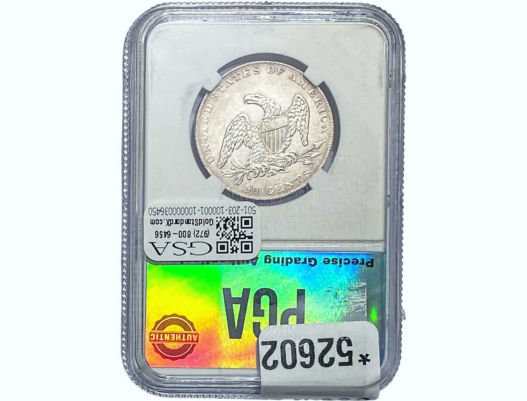 l. All non-certified coins and currency are guaranteed genuine, but are not guaranteed as to grade, since grading is a matter of opinion, an art and not a science, and therefore the description rendered by GSA or any third-party grading service may not agree with the opinion of others (including trained experts), and the same expert may not grade the same item with the same grade at two different times. GSA may, but is not obligated to, express an opinion as to non-certified numismatic items, in GSA’s opinion, or by its employees’ experience and the current interpretation of the American Numismatic Association’s standards as of the date the catalog was prepared. There is no guarantee or warranty expressed or implied that the grading opinions utilized by GSA, if any, will meet the standards of any grading service at any time in the future.