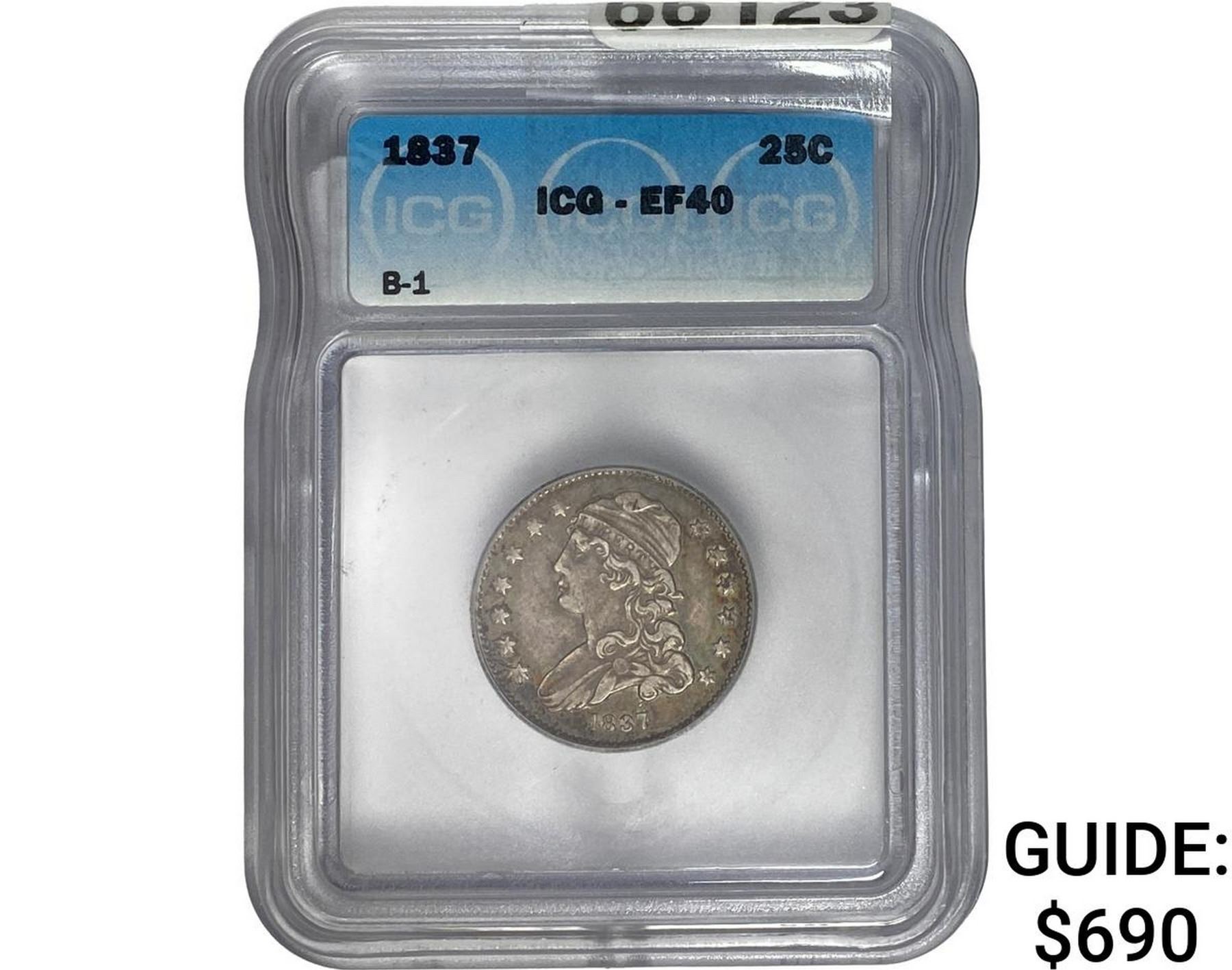 1837 Capped Bust Quarter ICG EF40