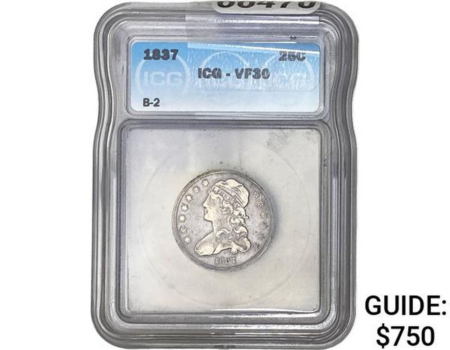 1837 Capped Bust Quarter ICG VF30