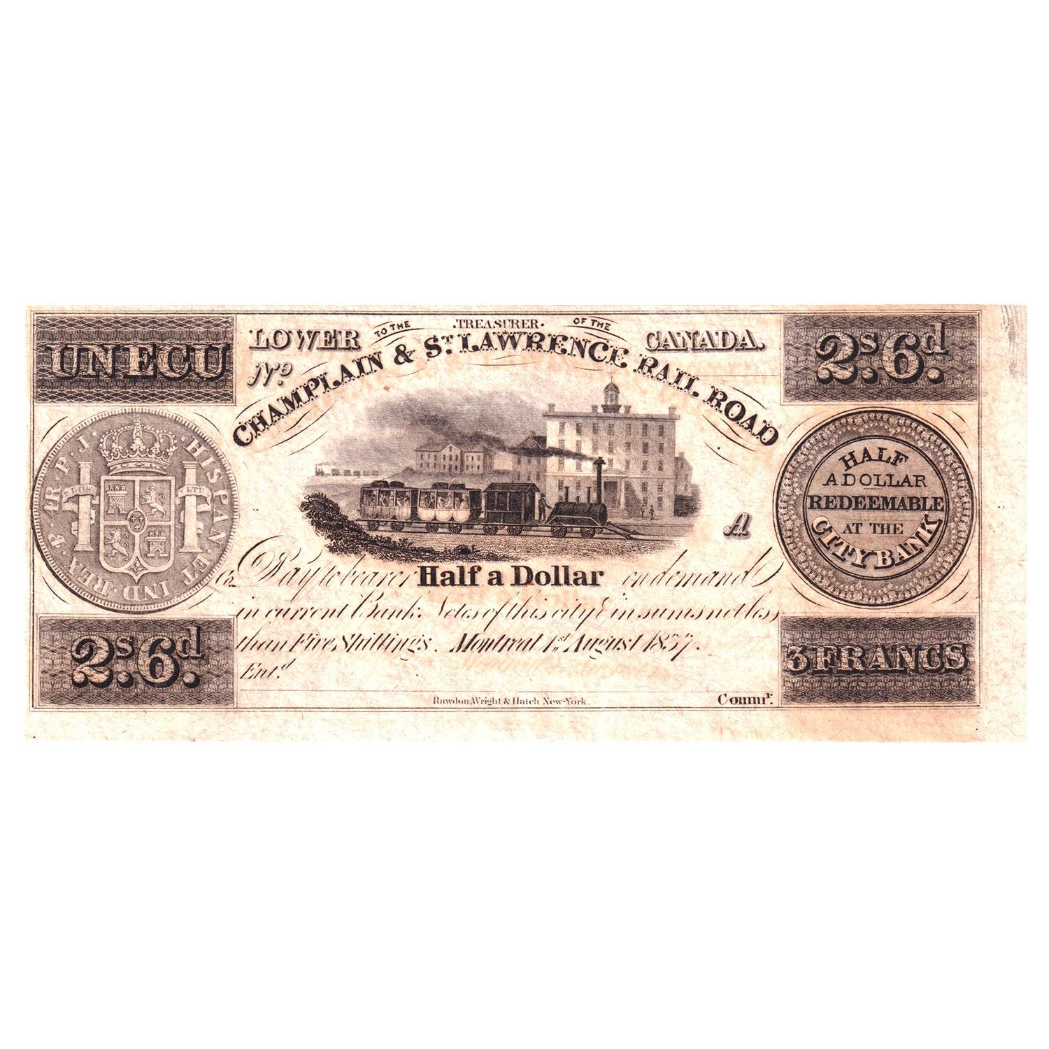 1837 Champlain & St. Lawrence Rail Road Half a Dollar/3 Francs 2s6d. Please see images for quality