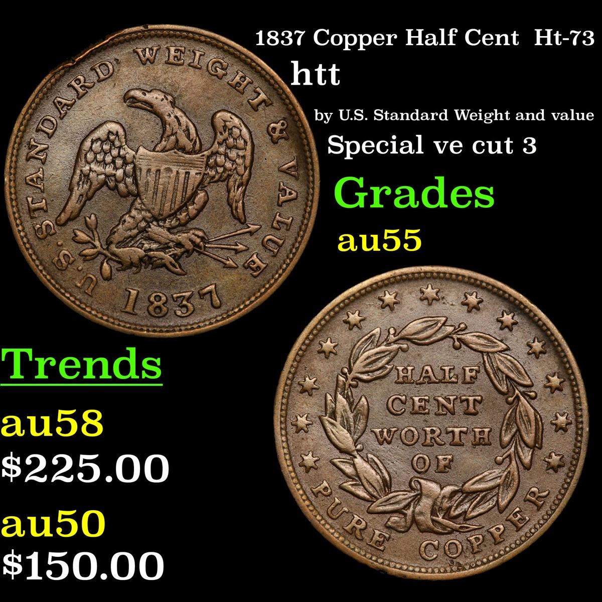 1837 Copper Half Cent Ht-73 Hard Times Token 1c Grades Choice AU.