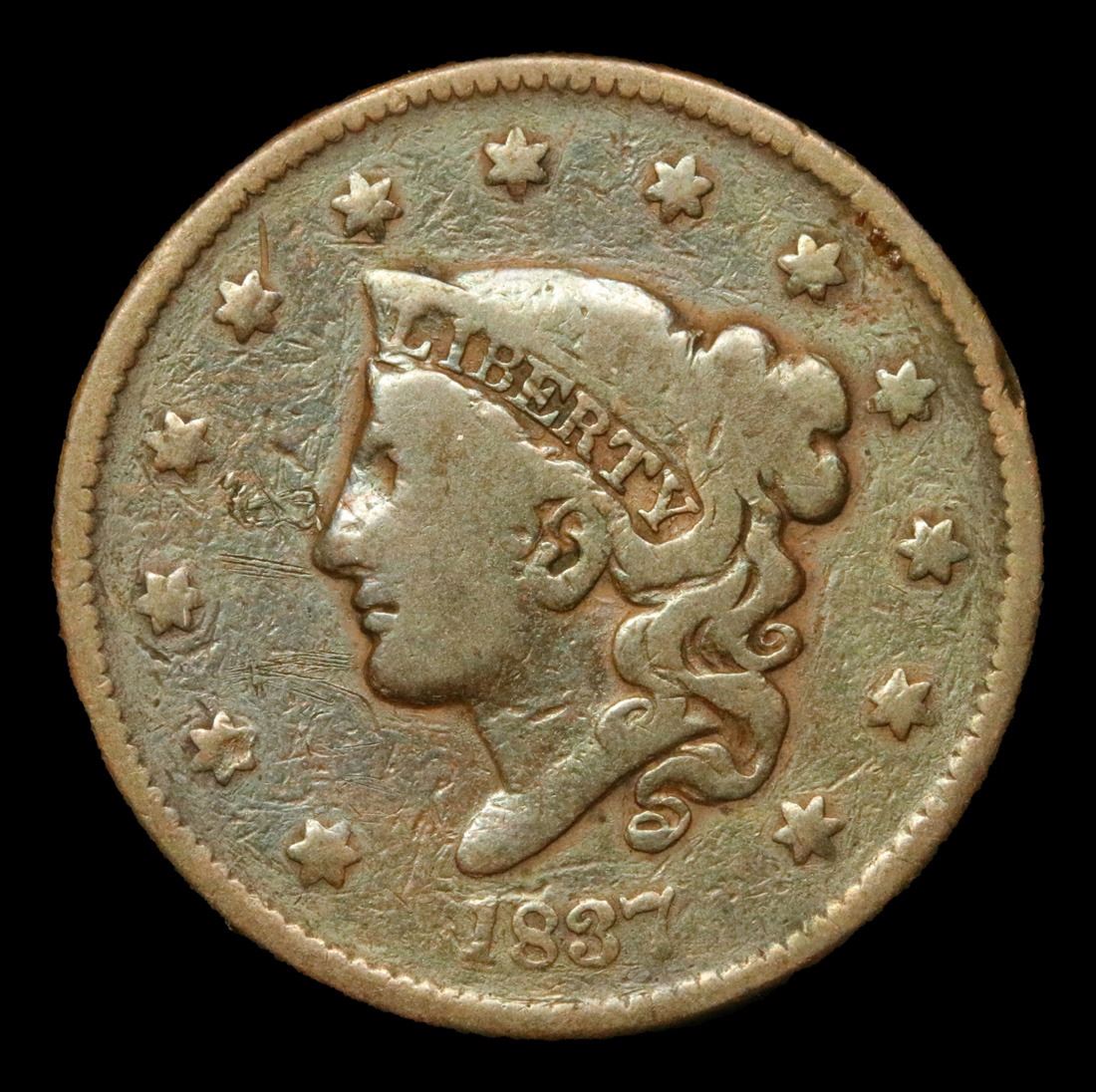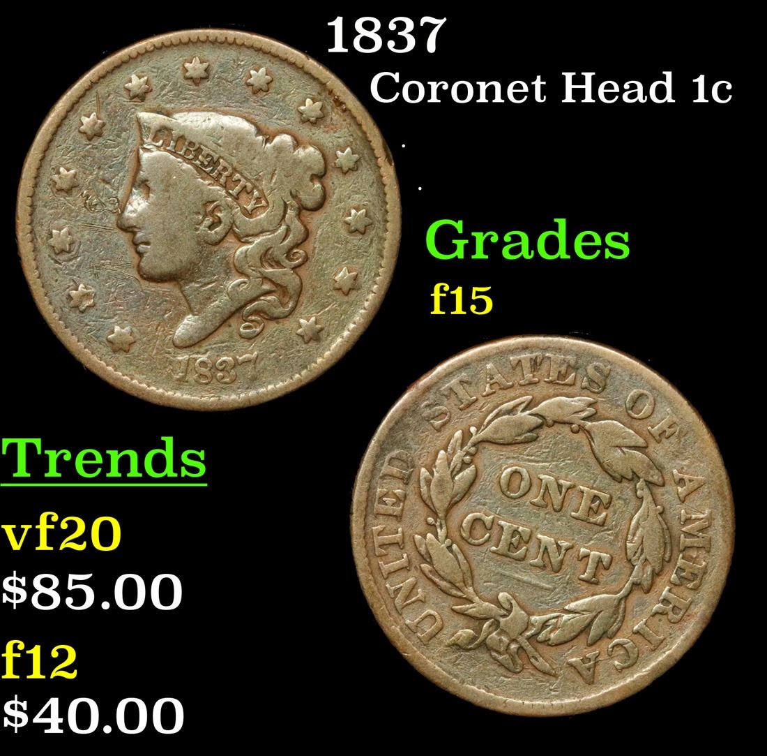 1837 . . Coronet Head Large Cent 1c Grades f+.