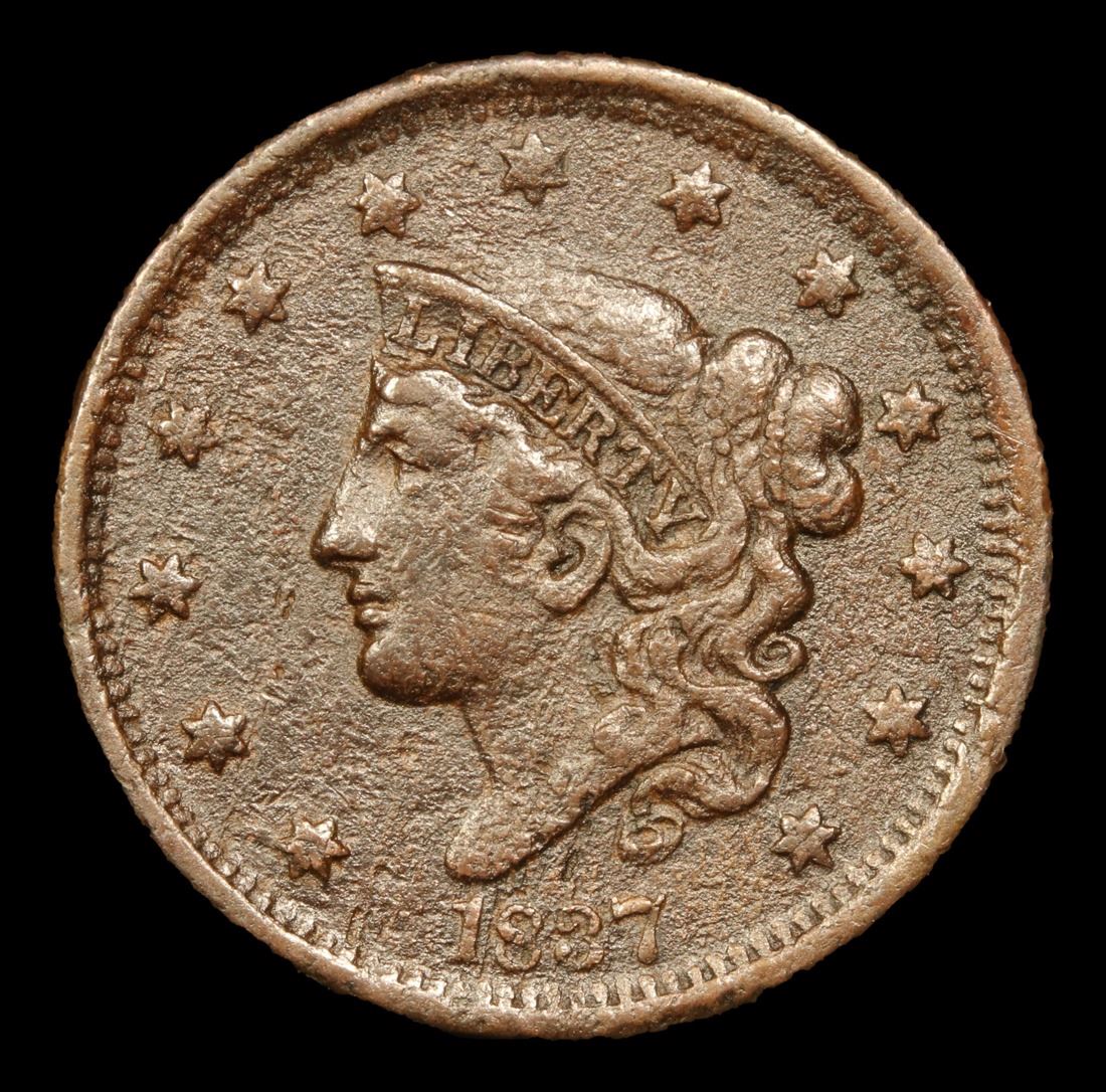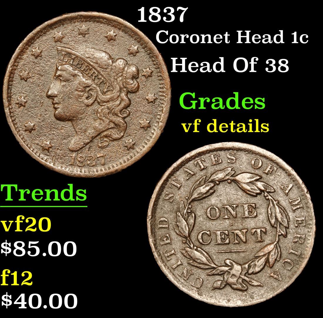 1837 Head Of 38 . Coronet Head Large Cent 1c Grades vf details.