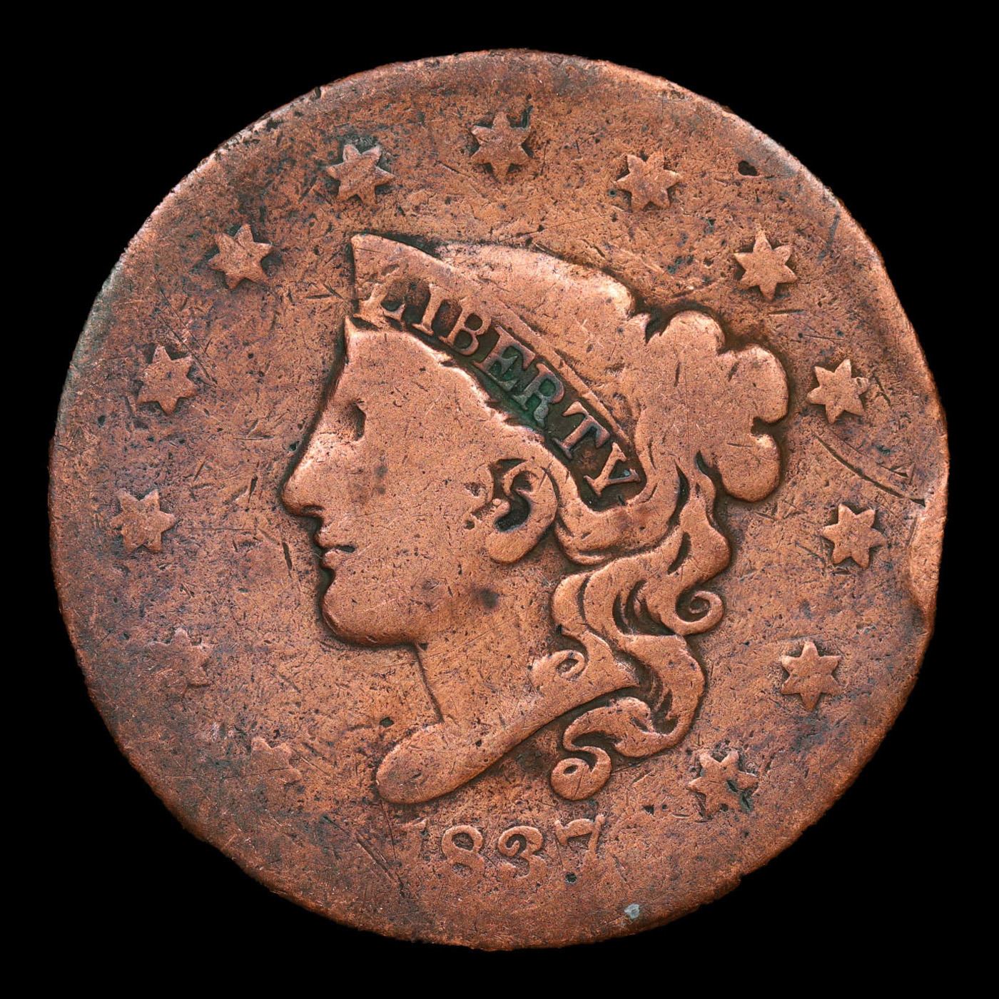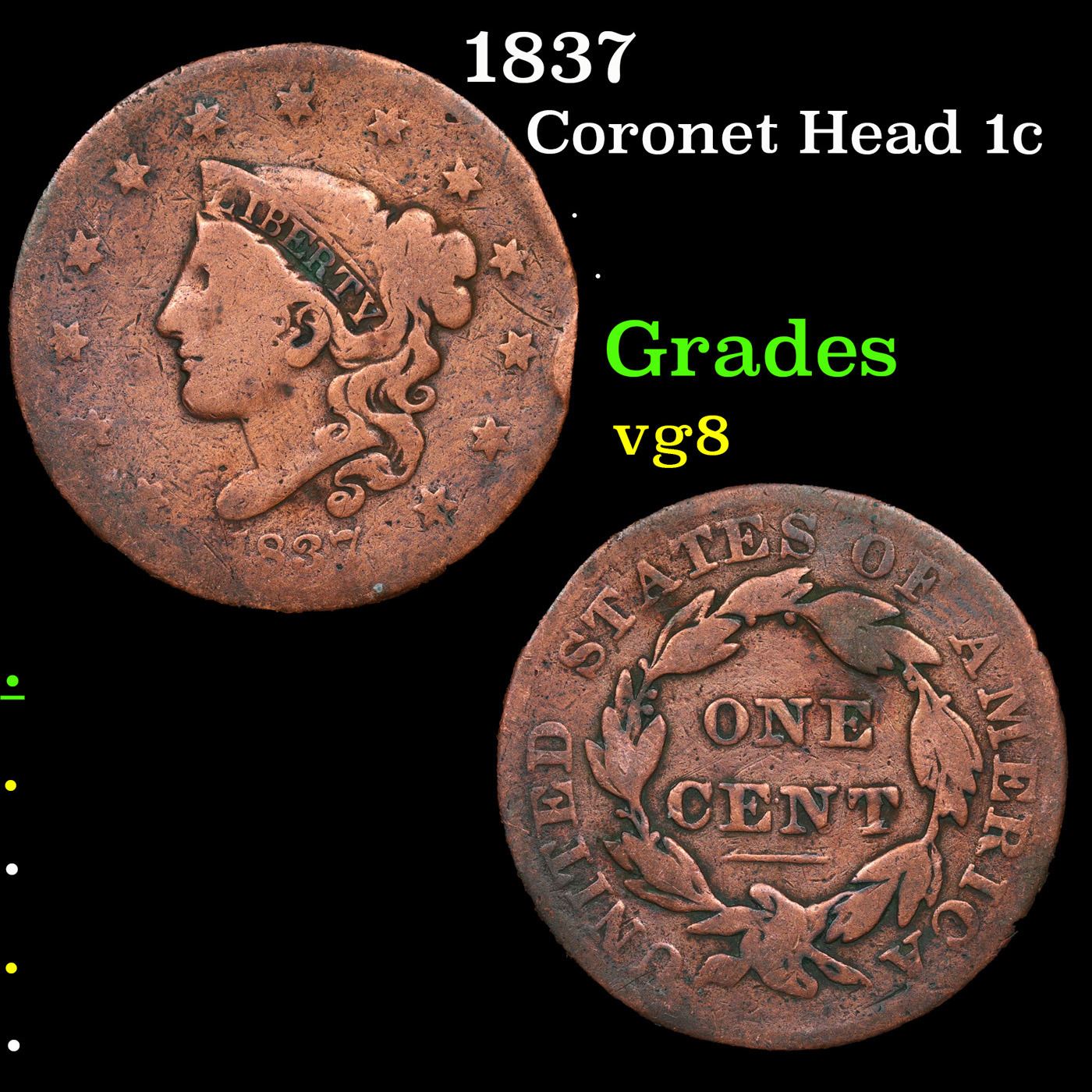 1837 Coronet Head Large Cent 1c Grades vg, very good.