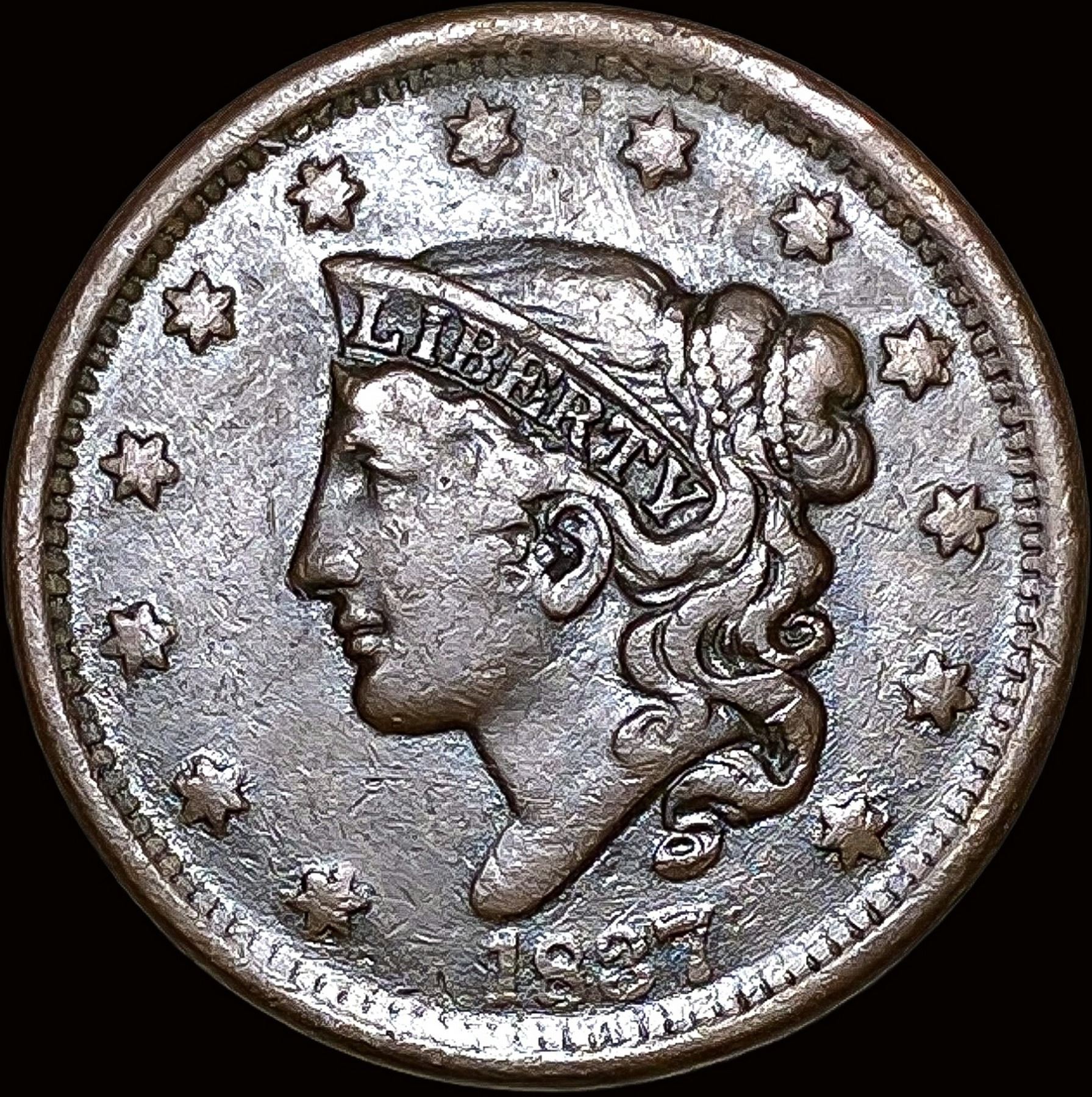1837 Coronet Head Large Cent ABOUT UNCIRCULATED